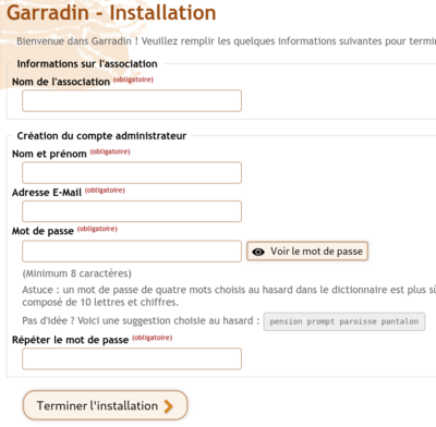 Lorsque KAZ ouvre le service Garradin, il vous laisse finir la configuration et indiquer vous même l'administrateur afin de ne pas perturber votre comptabilité avec un membre “fantôme”.
