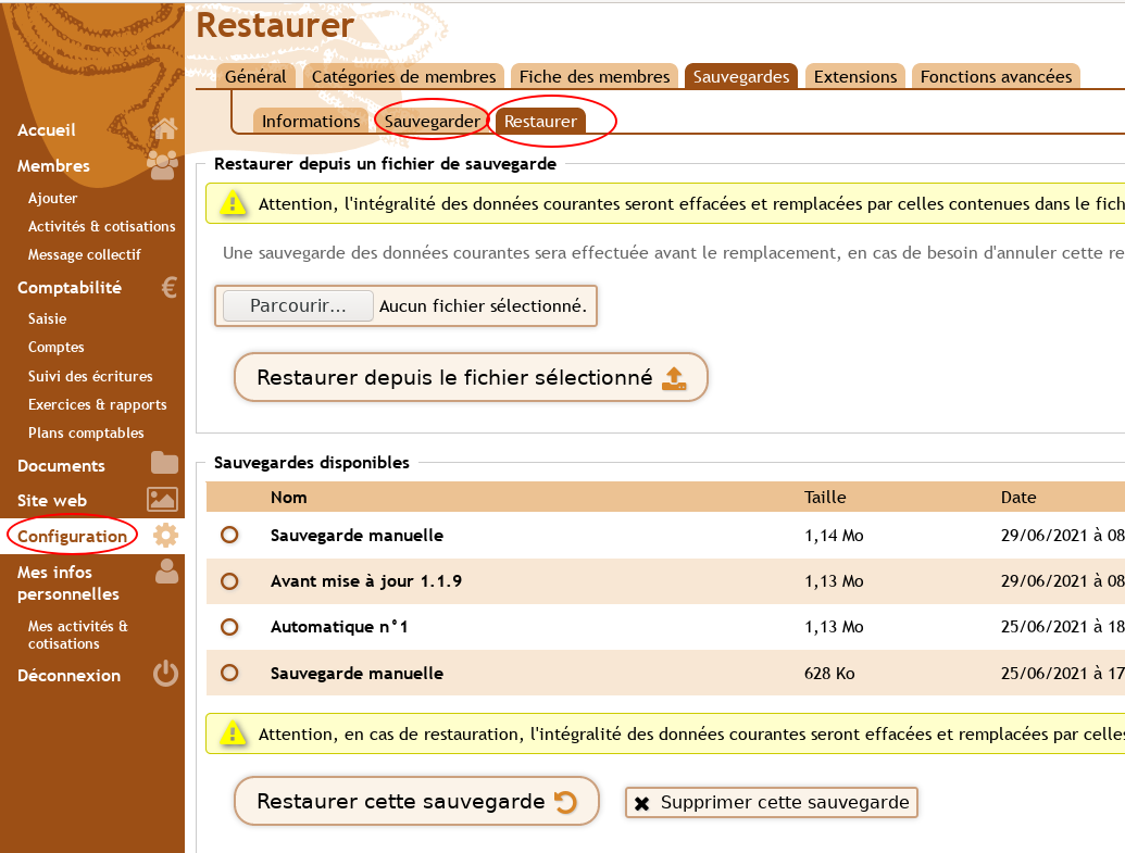 Utilisez la syntaxe suivante pour faire référence à ce fichier : {{:garradin:sauvegarde_restauration.png}}