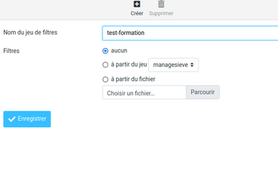 Dans ce même menu il est possible de supprimer un jeu de filtre, de modifier ou désactiver. On peut ainsi créer une sorte de catégorie de filtres dans laquelle on va mettre des filtres qui sont à créer dans la fenêtre de droite.