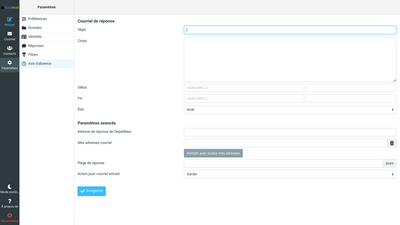Il peut être intéressant de pouvoir filtrer les mails quand ils arrivent. Il est aussi intéressant de pouvoir activer un répondeur pendant une période donnée, en cas d' absence.
