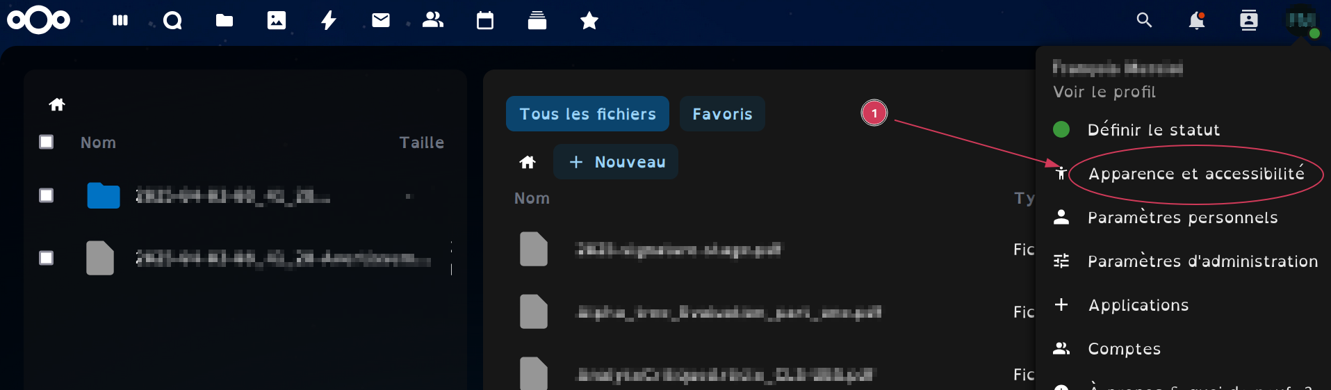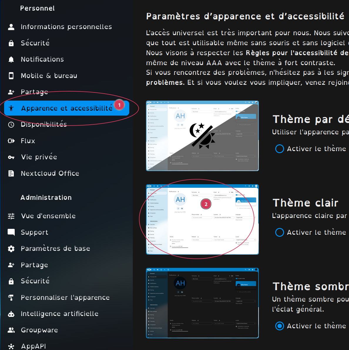 - ➊ Pour cela il faut en premier choisir “Apparence et Accessibilité”