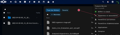 - ➊ vous pouvez cliquer directement sur le nom court que vous avez donné à votre cloud