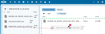 - ➊ Il suffit de faire un glisser/déposer. La pièce jointe va dans l'encadré en pointillé vert.