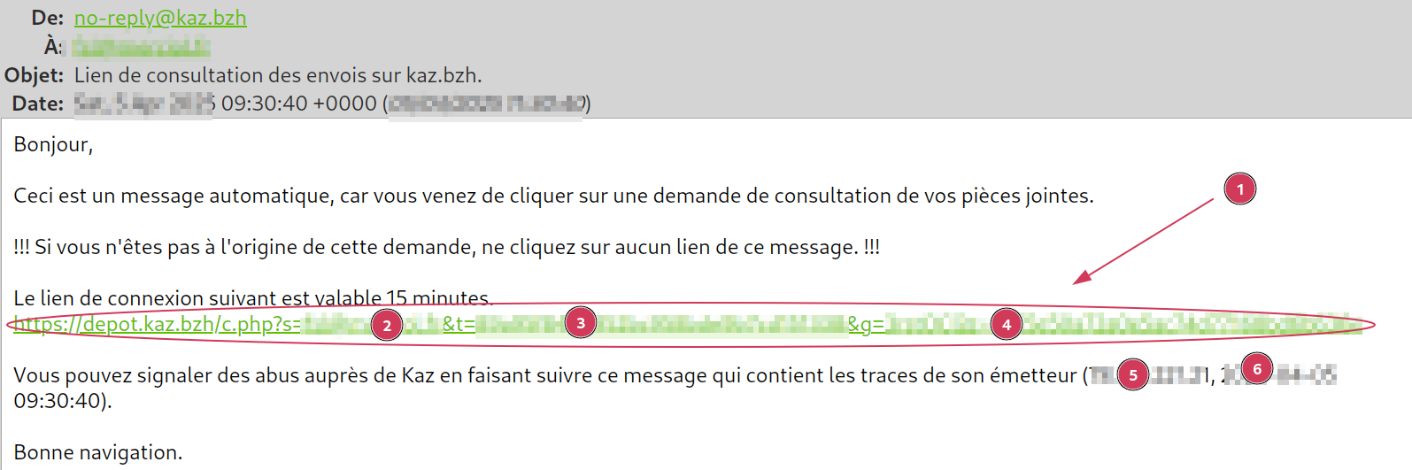 - ➎ l'adresse IP qui a demander cette personnalisation. Si vous n'êtes pas l'auteur de la demande, c'est la trace permettant de savoir qui l'a faite.