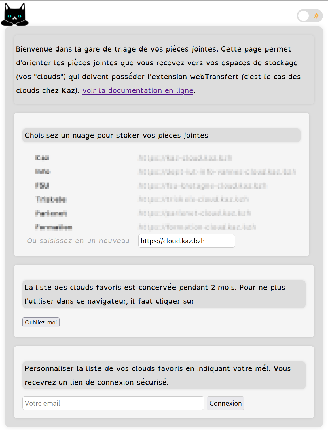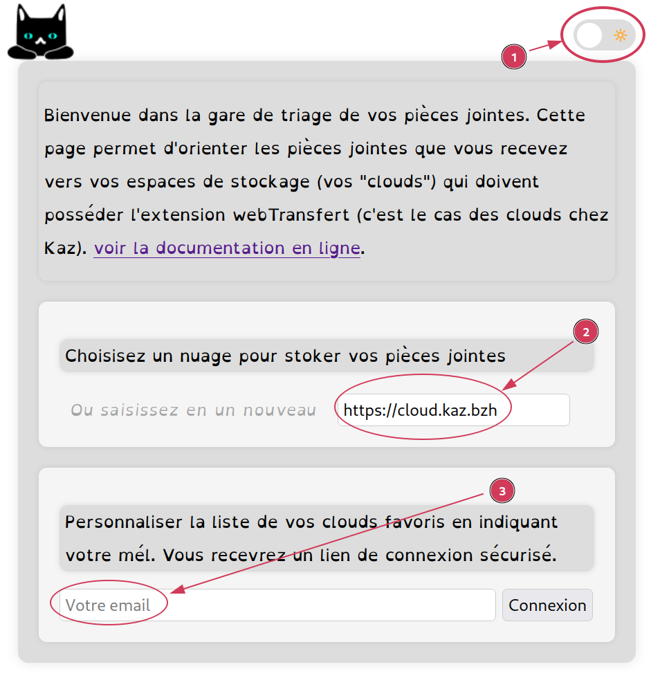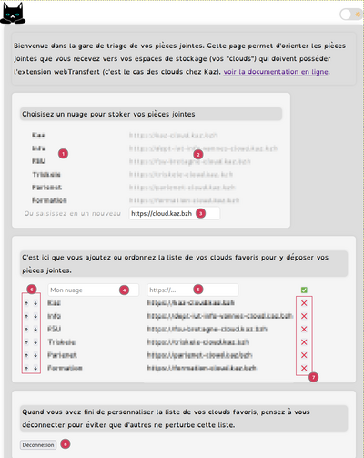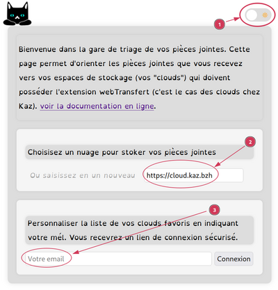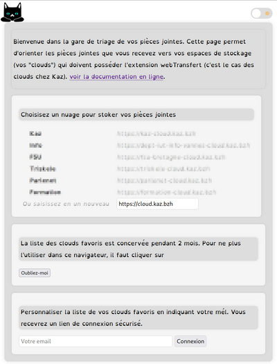 En validant votre mél ➌, vous entamez un processus de personnalisation. Il permet de mémoriser les clouds dans lesquels vous avez un compte et qui possède l'extension de rangement des pièces jointes. Pour cela une session va être ouverte et pour confirmer votre identité un message va vous êtes envoyer.