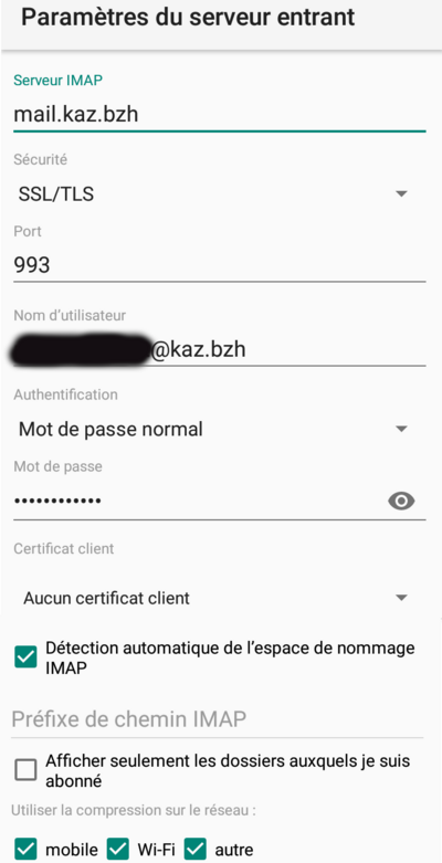 Paramètres IMAP :