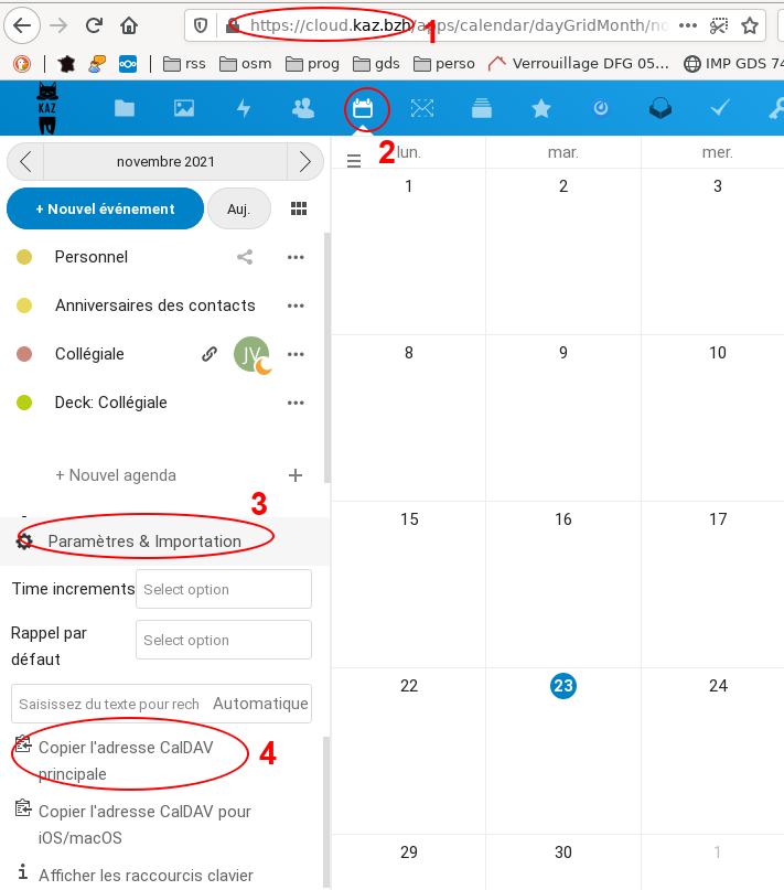 Il s'agit d'aller copier l'adresse de son calendrier perso (ou un calendrier partagé) depuis son NextCloud vers le le logiciel de courrier Thunderbird pour lequel il existe une extension de calendrier.