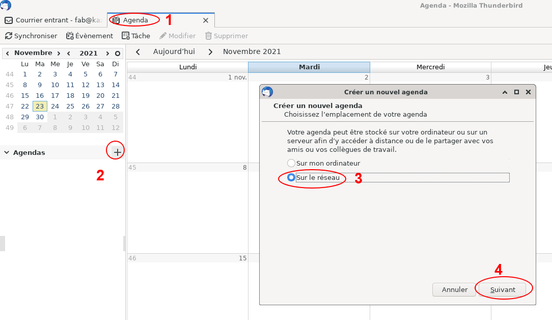 Et hop, l'adresse de votre calendrier perso est en mémoire. Ensuite, dans Thunderbird, ouvrez l'onglet Agenda et créer un nouveau calendrier