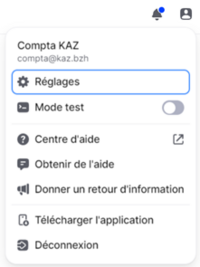 Clé d’API de test : Mollie permet d’utiliser un mode de test et une clé d’API de test pour la mise au point des formulaires. Pour passer en mode test, activer le curseur situé sous votre profil en haut à droite.