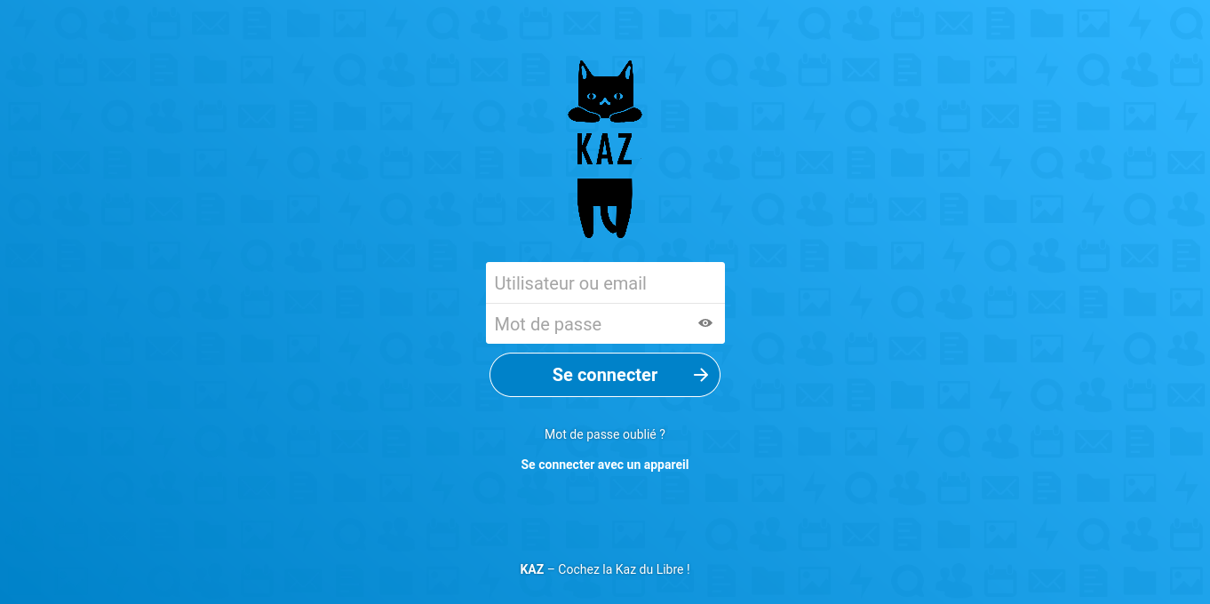 Pour accéder à son bureau, Bastet ouvre la page http://cloud.kaz.bzh sur son navigateur préféré. La page suivante s'ouvre