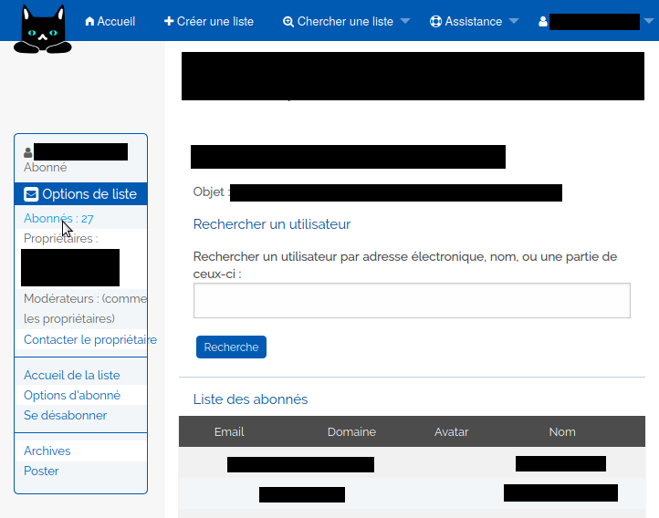 Un peu plus compliqué mais valable quel que soit le nombre de personnes : Utiliser des listes de diffusion. Il s’agit de créer une liste d’abonnés sur un serveur et d’envoyer les mails sur une adresse unique du type « maliste@listes.kaz.bzh ». Le serveur de listes va distribuer aux abonnés ces mails avec la possibilité d’autoriser ou non les réponses sur la liste, à une adresse mail donnée… Les adresses sont masquées, le serveur de liste est connu comme non spammeur, il n’y pas de limite théorique au nombre d’abonnés (certaines listes dépassent les 5000 abonnés). C’est la solution idéale pour les « newsletter » mais également pour les CA d’association dès lors qu’il s’agit de diffuser des informations.