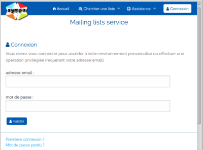 Allez sur le site https://listes.kaz.bzh/wws pour vous connecter ou pour créer votre compte en choisissant “Première connexion ?”