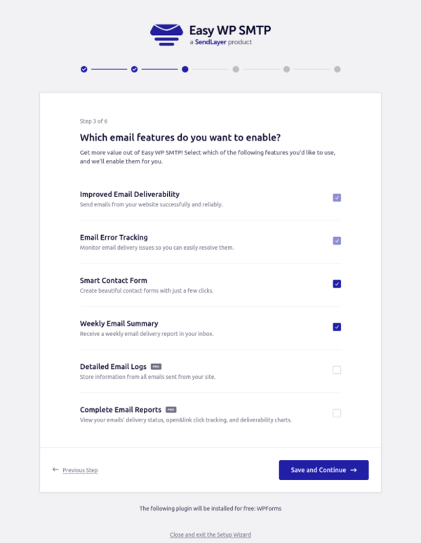 La case suivante, qui promet des formulaires faciles, va en fait installer une autre extension sur notre site “WPforms”.
